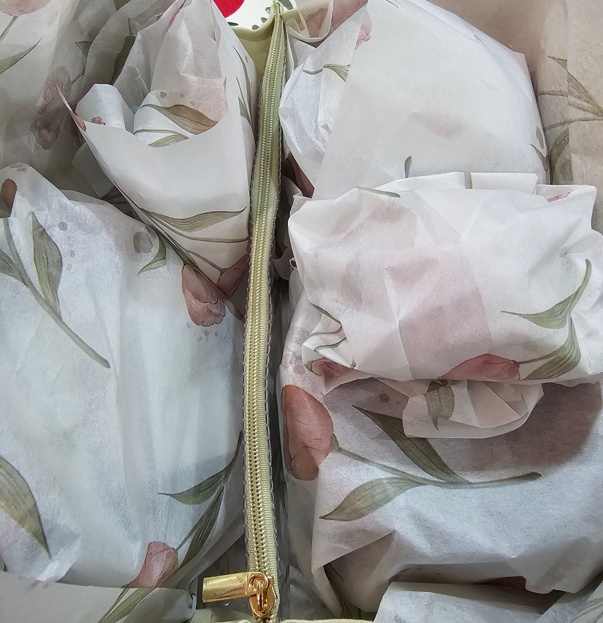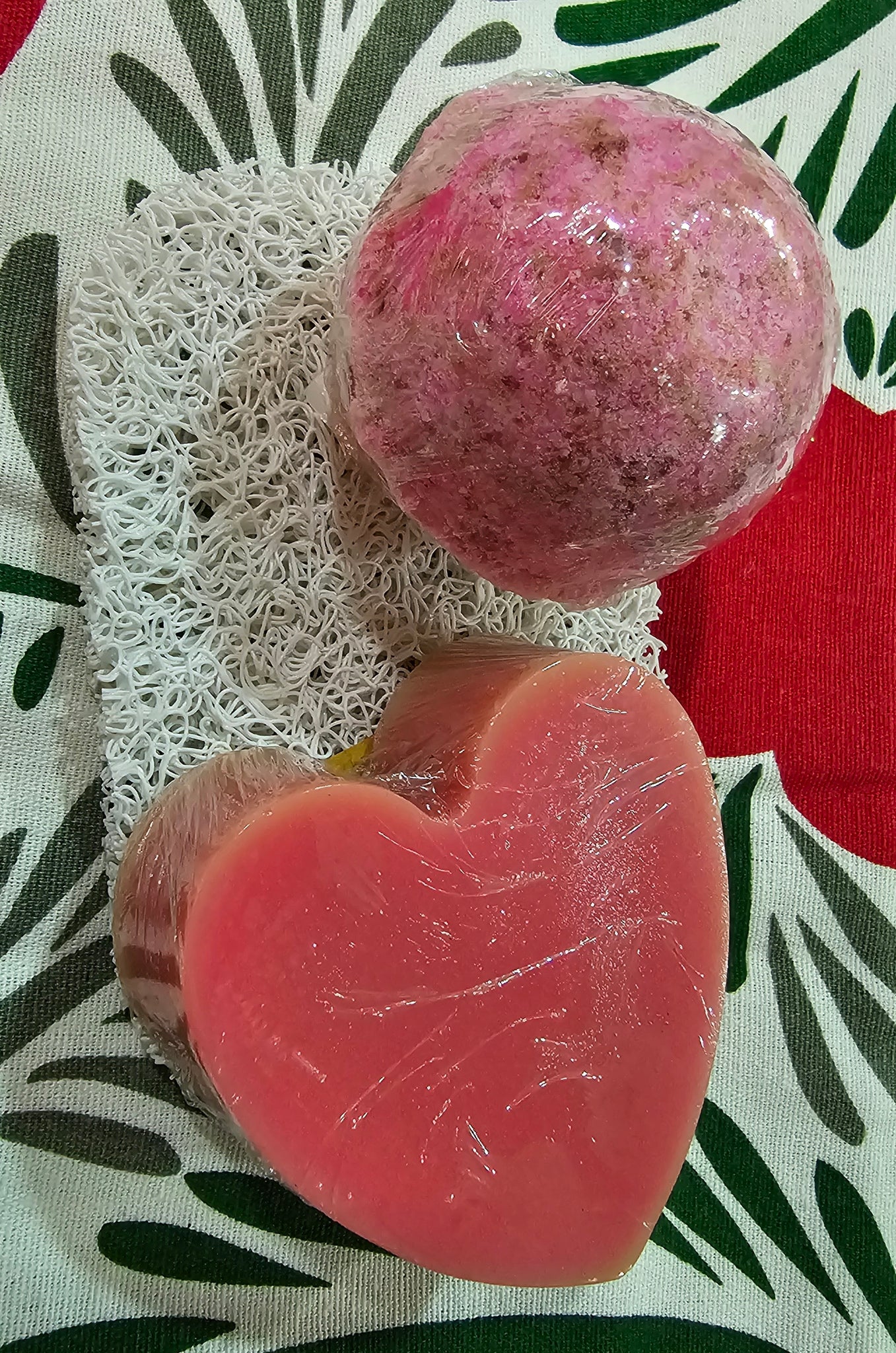 تحتوي على: 250 مل شمعة صويا لافندر؛ قطعتان من صابون حليب الماعز برائحة الورد على شكل قلب؛ بلسم الجسم بزبدة الشيا وأنبوب مريح من أملاح الاستحمام باللافندر والورد.