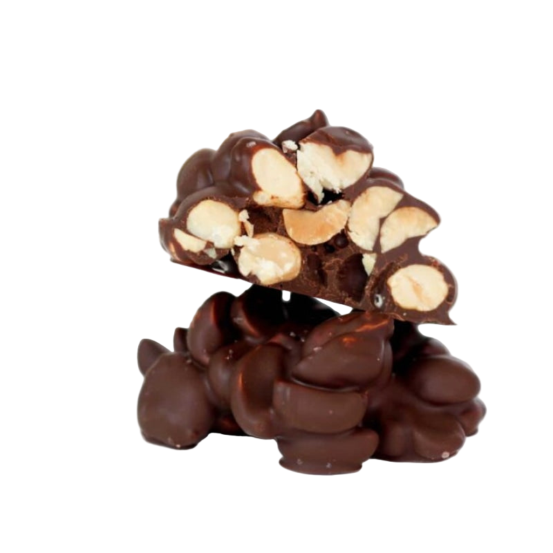 الفول السوداني المحمص المغطى بالشوكولاتة الداكنة الغنية.