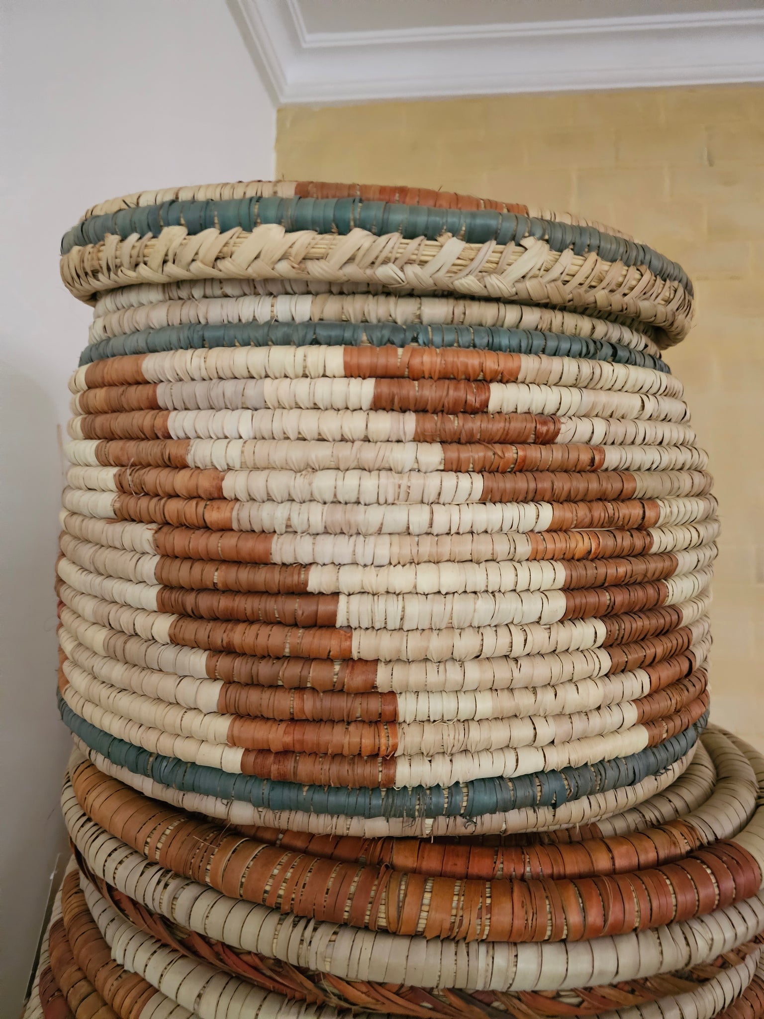 Beautiful hand-woven reed baskets; perfect for storing toys, throw blankets and cushions.